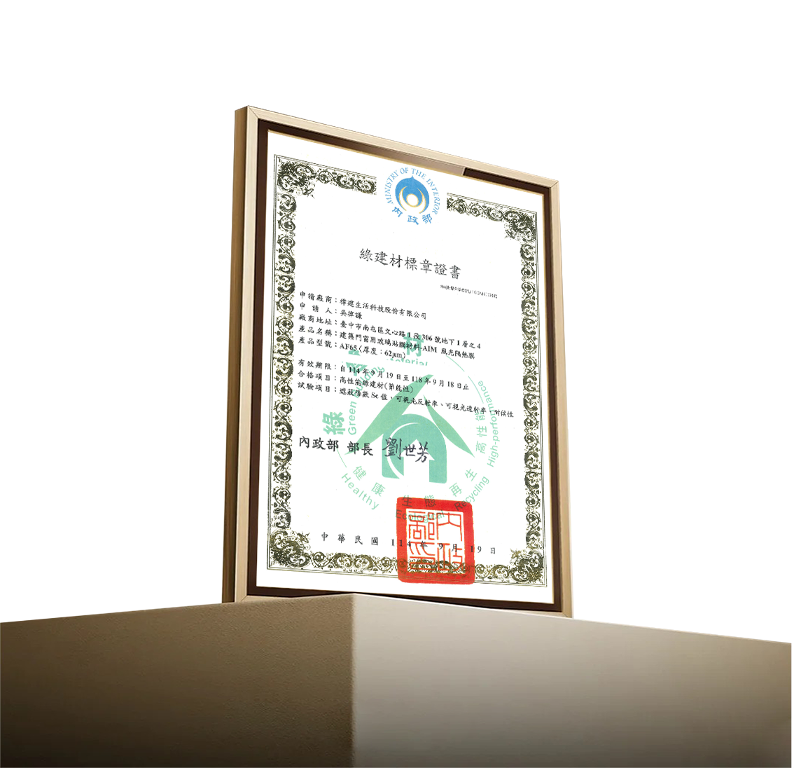 AIM風光隔熱膜AF65榮獲台灣綠建材標章認證,是台灣在地品牌第一家獲得殊榮,是極困難達成的成績